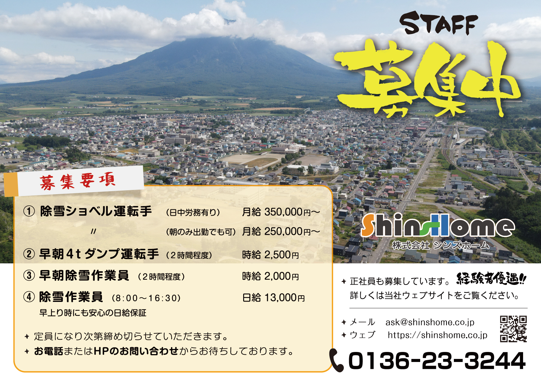 - 求人募集 に重機オペレーター(冬季)を追加しました。